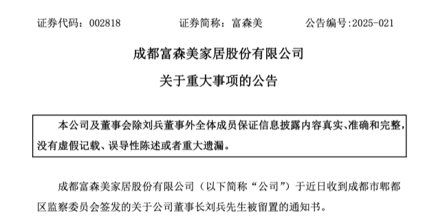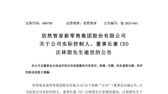 居然智家发布公告:董事长汪林朋先生在家中离世